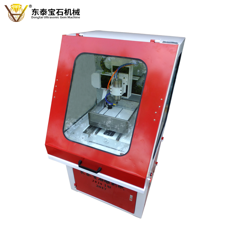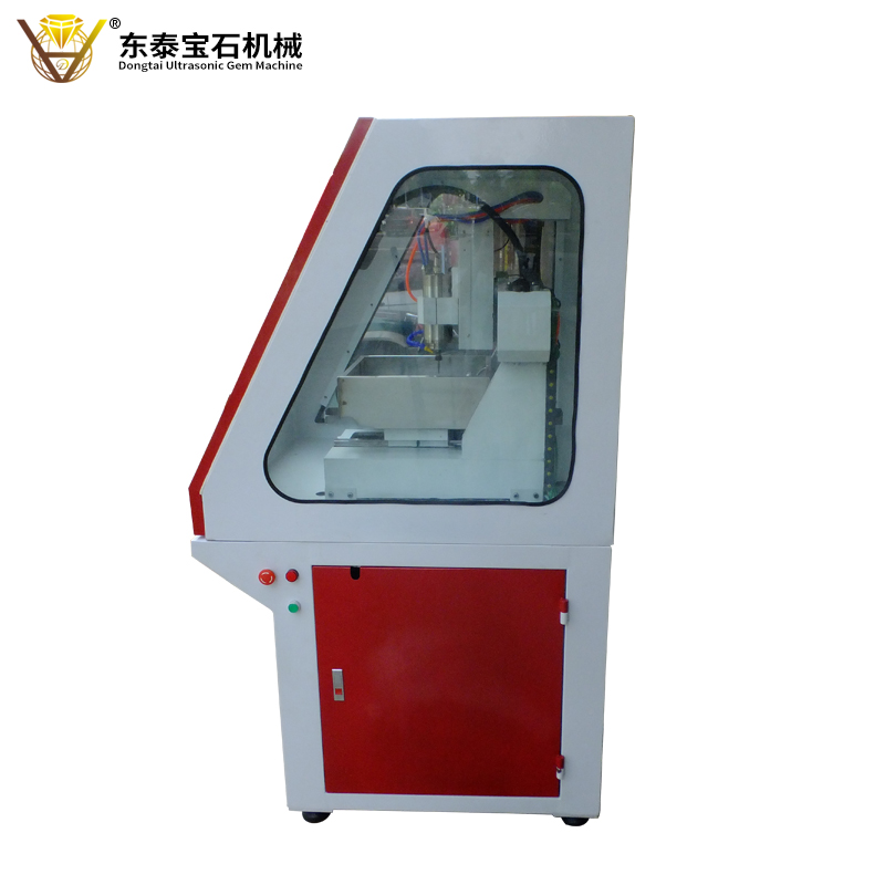 功能:東泰超聲波寶石機(jī)械生產(chǎn)的2017年新款數(shù)控雕刻雕刻機(jī),使用優(yōu)質(zhì)絲桿,模具主軸電機(jī),機(jī)器在使用過程中,精度高,速度快,不易出現(xiàn)故障。機(jī)器在生產(chǎn)各種寶石產(chǎn)品時方便快捷,配置標(biāo)準(zhǔn)對刀儀,在機(jī)器生產(chǎn)過程中出現(xiàn)斷刀時,可以進(jìn)行對刀,使用刀具高度一致,兩次雕刻高度一樣,產(chǎn)品出來不會有斷痕,接合完整,解決了產(chǎn)品對刀難度,增加的手柄,可以不用使用電腦,只要將出好的刀具路徑復(fù)制到U盤,插入手柄即可使用。操作方便快捷,多臺機(jī)使用時可以減少電腦的數(shù)量和機(jī)器使用場地,帶有12mm的加厚玻璃隔音防塵罩,可以雕刻各種平面的玉石翡翠瑪瑙掛件,精準(zhǔn)度高達(dá)0.01mm。